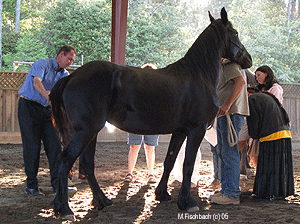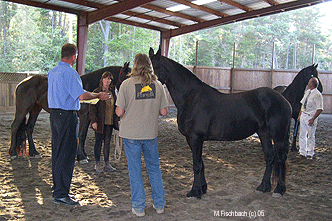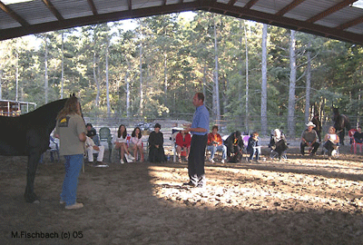 After breaking for lunch, our first horse entered the arena. Mr Englesma, patiently and fully explained how the lenier score forms were filled out, how and on what the horses were judged and what was considered 'normal'. He took us step by step though the judging process and asked for an audience censes on the scores he gave as he filled in the form. We followed this with several more horses. Auditors then quietly and quickly became 'mock' judges and gave there own scores to the horses. These we then compared with Mr. Englesma's and any questions, concerns or comments were answered.