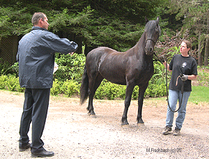 At this point I must comment and applaud the owners for allowing their horses to be the 'guinea pig's for lots of straight forward conformational, conditional comments as people tried to learn. You all did extremely well and took it as a learning process not as 'insults' to your horse(s) thank you for that. It made the event very honest and fun. The day ended with all the older horses we had judged entering the arena. Mr. Englemas lined them up by order of preference. The only award owners received was a thank you for bringing their horses to participate, and tips for preparing their horses for the kuering.